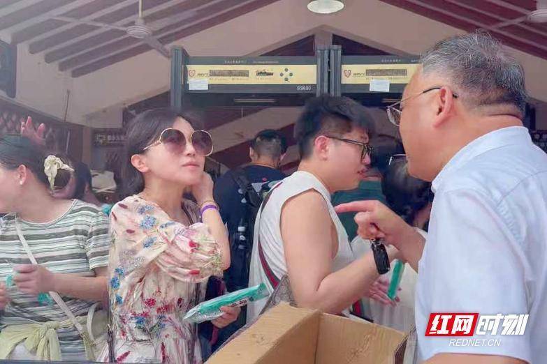 现场,工作人员穿梭于游客之间,将冒着丝丝凉气的老冰棍和色彩鲜艳的手风扇递向排队的人群。“来,您拿好,解解暑!”一位工作人员笑着把老冰棍递给一位背着背包的女游客。“有了,有了,谢谢!”女游客惊喜地接过,随即笑着说道,“感受到了张家界人民的热情,回去要把美丽的张家界分享给朋友们!”旁边拿到手风扇的小朋友,开心地对着自己扇风,又蹦又跳地和家长说:“好凉快呀,这个风扇真好看!”不同年龄段的游客都在这一贴心举措中感受到关怀:戴着遮阳帽的老人接过冰棍时连连点头致谢,年轻游客则拿着手风扇一边降温,一边用手机记录下这温馨的瞬间…… 这一系列宠游客的“妙招”,让游客们在高温天气下游玩的疲惫感大大减轻,也让大家感受到了满满的诚意。